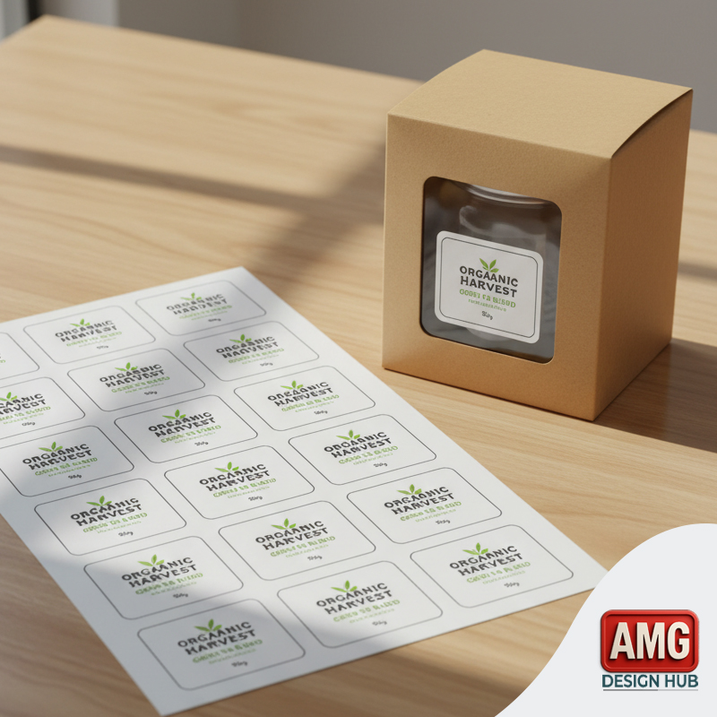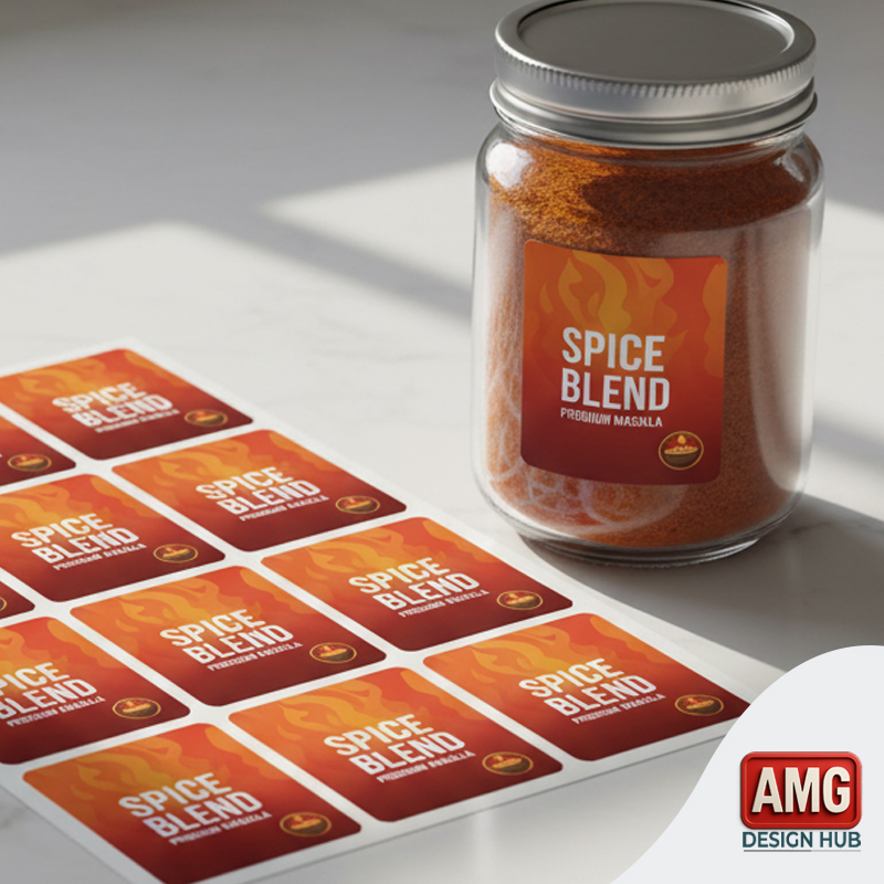 Create eye-catching square product stickers with AMG Design Hub. Perfect for jars, boxes, bottles, and packaging—customizable in size, design, and finish to match your brand.